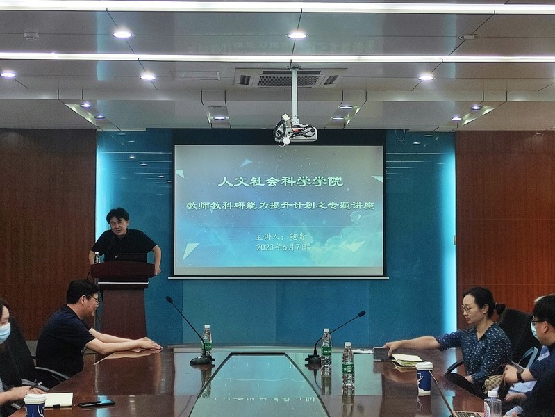 为进一步提升人文社会科学学院教师的教育教学水平和科学研究能力,纵深推进学院教科研能力三年(2022-2024)提升计划各项战略举措的落地落实,积极拓展高博智库发展研究中心特约研究员们的学术视野与学术研究方法训练,6月7日,人文社会科学学院邀请南京大学外国语学院文学博士、南京工业大学外国语言文学学院“应用语言学”研究中心主任鲍贵教授来院作了题为“外语教学研究中问卷调查的原理、设计与应用”专题讲座。人文学院一系两部部分教师、高博智库部分研究员聆听了讲座。讲座由人文社会科学学院副院长、高博智库发展研究中心执行主任陶德胜主持。