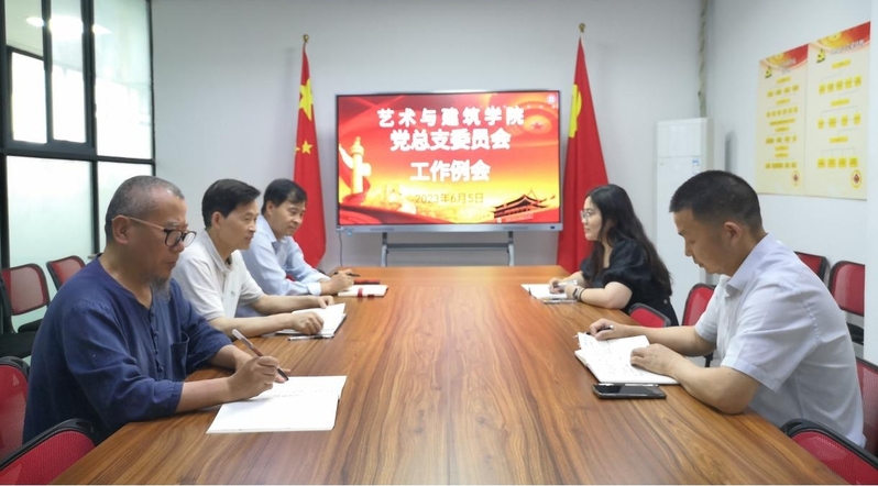 6月5日下午1:30,艺术与建筑学院党总支在党员活动室召开新一届党总支委员会第一次工作例会,安排下一阶段学院党建工作和商讨相关事项。党总支书记、副院长施建平教授,党总支副书记纪冰心副教授,宣传委员江水明副教授,纪检委员兼统战委员张斌副教授,组织委员李一帆老师参会。会议由施建平主持。
