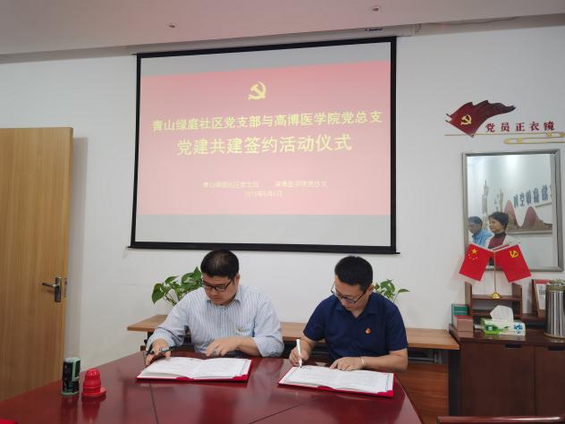 为深入贯彻落实党的二十大精神,打开党的基层组织工作新格局,通过优势互补、资源共享,积极探索党建引领学院与社区协同发展新路径。在学校党委工作部的领导下,校企合作办公室的指导下,经兄弟学院国际商学院党总支的牵线搭桥,医学与公共服务学院党总支于今年上半年成功与科技城龙惠花苑社区、青山绿庭社区开展结对共建。