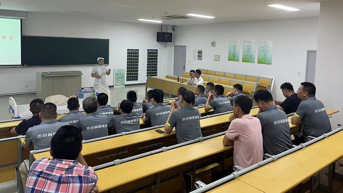 此次培训任务由机电工程学院汽车工程技术教研室承担,教研室主任庄旭和专业教师周雪峰、彭家祥组成授课团队进行主讲,杰尔森新能源科技(苏州)有限公司李生华、王如洲、周健以及联合发起人李乐平等20人参与培训学习。本次培训面向汽车维修企业、电池维修行业从业人员,培训内容涵盖了新能源汽车发展趋势下的人才需求、三电系统及维修、高压互锁、空调系统以及新能源电池等方面的理论知识讲解和实践教学,并根据学员的基本情况进行了急救知识的扩充。