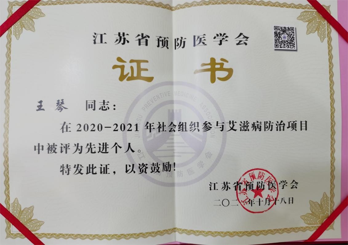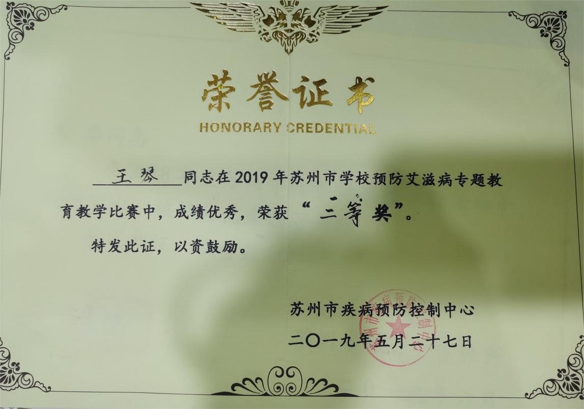 苏州市预防艾滋病专题教学比赛和团体心理辅导案例比赛证书