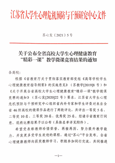 组织课程老师们参加江苏省心理健康教育“精彩一课”获佳绩