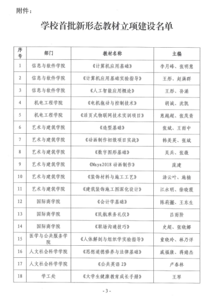 2021年她带领课程团队申请的《大学生健康教育成长手册》成为学校首批新形态教材立项建设课程。目前课程的教材已完成初稿,微课视频也正在录制中,这是一本结构化的、活页式的、便于操作的心理健康教材,融合了新生从如何到毕业的过程中心理发展变化特点的主题,既是一本课程教材,同时也能作为辅导员开展第二课堂主题教育的教案,课程内容包括从新生入学后开展第一次主题教育到最后一次毕业班会的教育活动方案。