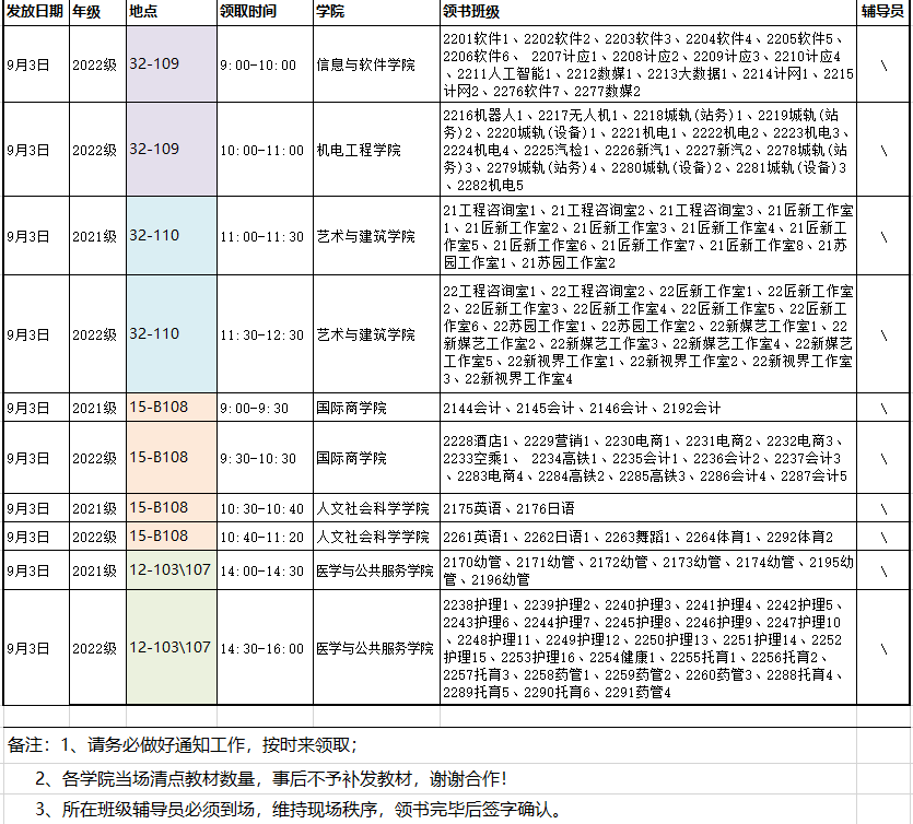 关于2023-2024-1学期2021级2022级教材发放安排的通知