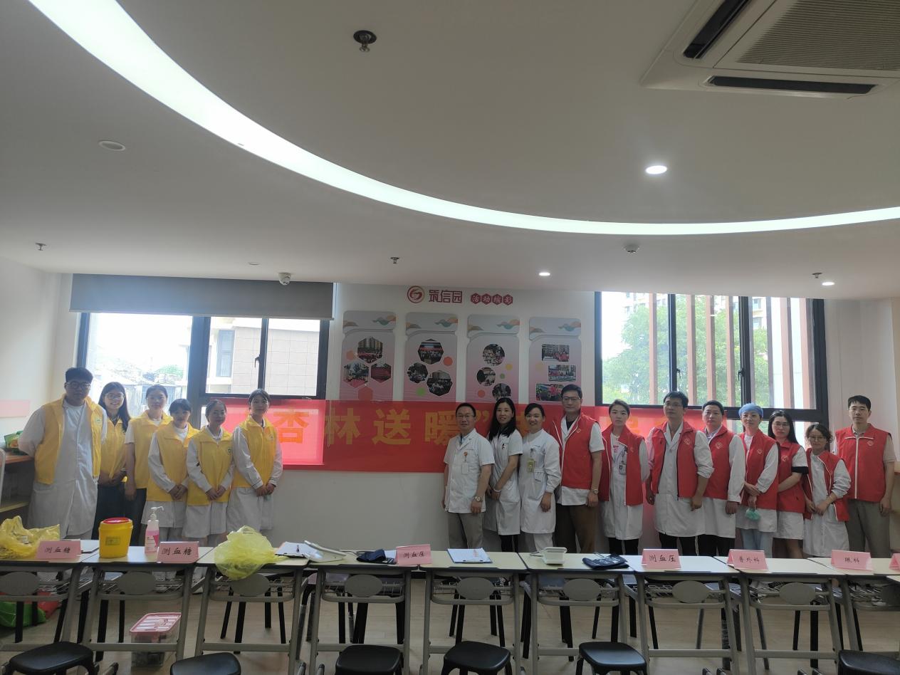 (图为我院志愿者为社区居民测血压、测血糖)