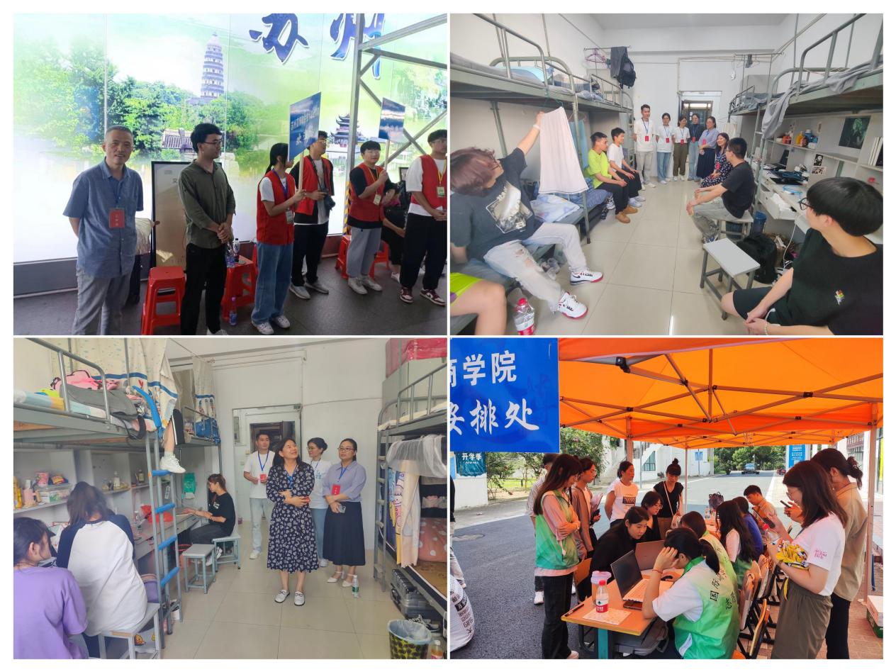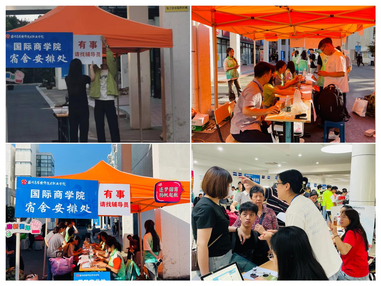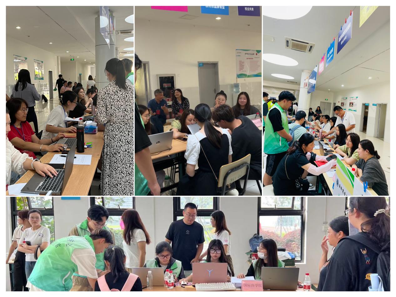 在报告大厅,各系副主任、党员老师与家长亲切交谈,为学生答疑解惑,在就读专业的就业前景、学历提升通道、专业课程学习等方面进行了详细的讲解;在苏州高铁北站,史超老师和学生志愿者们热情地接过行李,将学生和家长送到开往高博的大巴车上;在宿舍安排区,辅导员老师和学生志愿者们积极引导新生们办理入住手续,帮助新生们尽快适应大学生活。