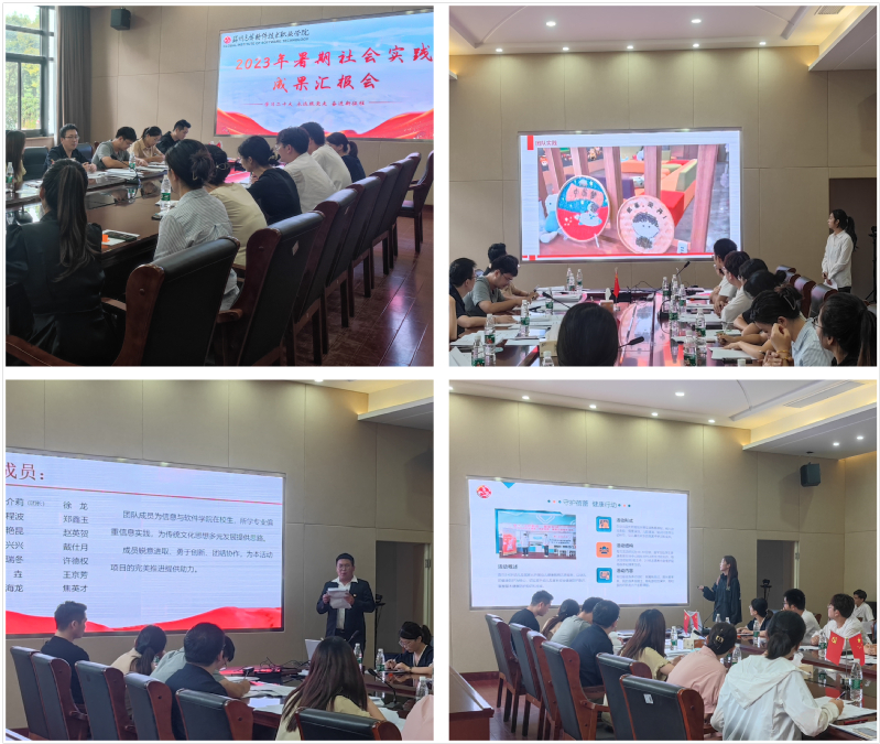 为深入学习宣传贯彻党的二十大精神,推动我校青年学生学习实践精神、坚定制度自信、厚植爱国情怀、积极服务社会,进一步总结服务经验,引导学生知行合一。9月19日,学校2023年暑期社会实践成果汇报评比会在行政楼一楼会议室举行,学生工作部部长邹艳星,校团委书记王鑫,副书记孙宇珊,医学与公共服务学院学工办主任贺茜,机电工程学院学工办主任王一迪,艺术与建筑学院学工办主任李一帆,国际商学院学工办主任蒋运奇,人文社会科学学院学工办主任赵雪飞,信息与软件学院分团委书记赵楠出席评比会并担任评委。