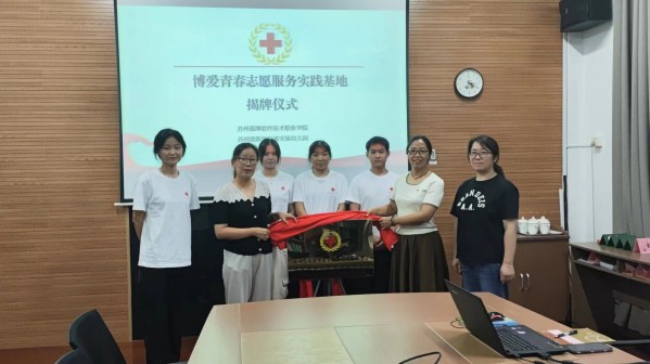 9月20日下午,我校与高新区东渚实验幼儿园举办了博爱青春志愿服务实践基地揭牌仪式。高新区东渚实验幼儿园园长金梅芳、园长助理徐芳、学生健康教育中心主任王琴、学生健康教育中心项目负责老师以及志愿者代表参加揭牌仪式。