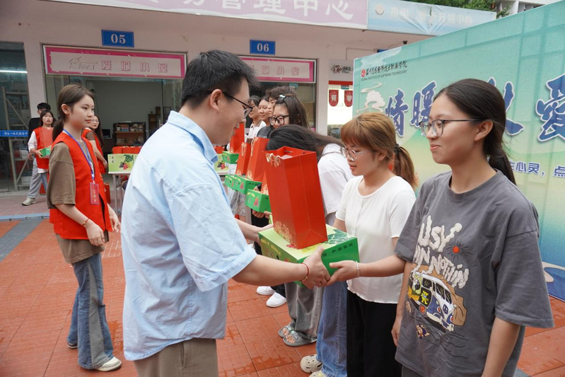 随后,徐子良教授、邹艳星处长、周萍副处长和各二级学院的资助负责老师代表学校为同学们送上了精心准备的月饼、水果和生活用品等慰问物资,满载着学校对同学们的关心和祝福。现场领取慰问礼品的同学们脸上洋溢着喜悦与感动,一声声“谢谢”都浸满了幸福的味道。