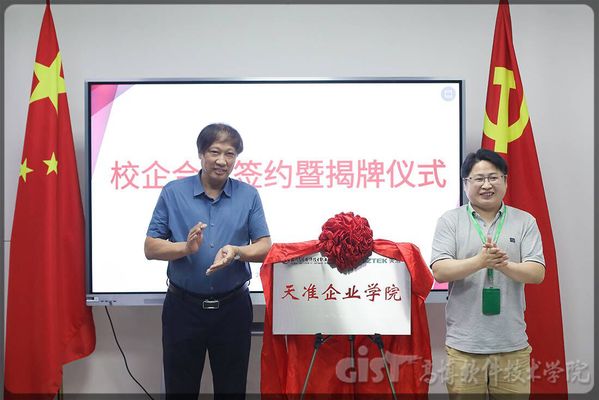 邹学海副校长和陆韵枫总监分别代表双方签订校企合作协议,并与程丛飞总经理共同为“天准企业学院”揭牌,蔡伟义院长与陆韵枫总监为“实践教学基地”揭牌。