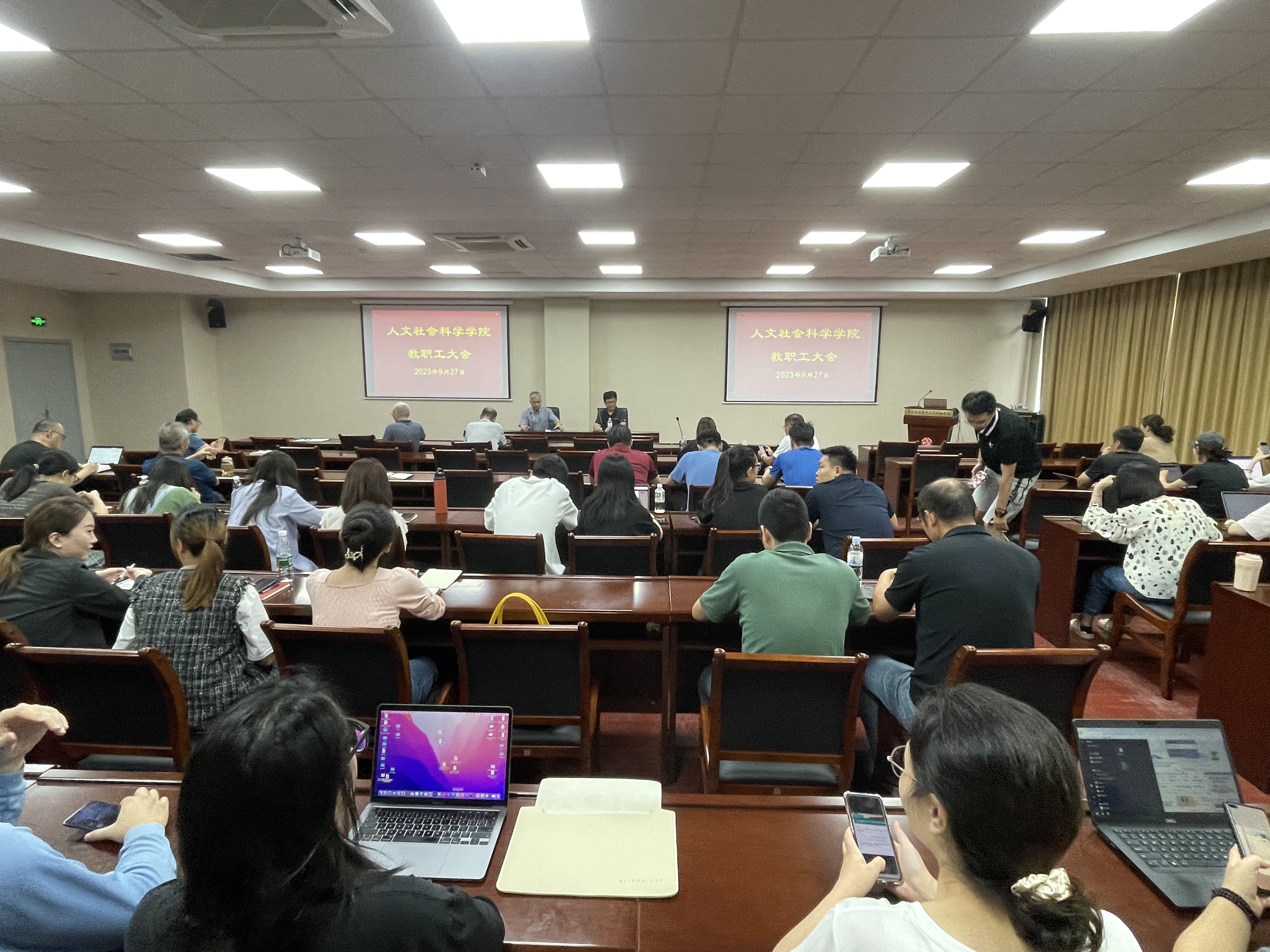 9月27日下午,人文学院在行政楼215会议室召开了全体教职工大会暨政治理论学习会。会议由黄兴院长主持。