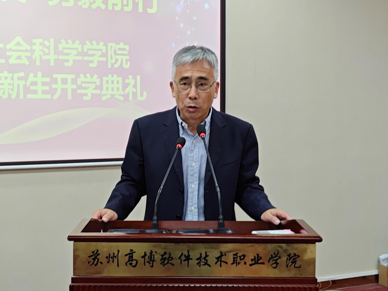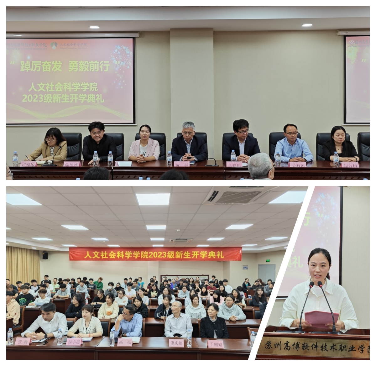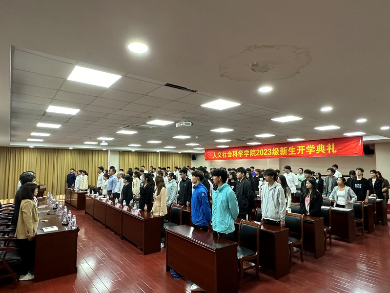 10月11日下午,人文社会科学学院在行政楼215会议室隆重举行2023级新生开学典礼。校长助理、学院院长黄兴,校长助理、学院党总支书记吴建明,副院长马亚丽、吴歧范、陶德胜,学院党总支副书记崔红梅,院长助理卢春林,特聘教授洪庆福、于丽娟,公共基础教研部主任高亮,以及学院各专业负责人、办公室主任、辅导员老师和2023级全体新生出席了开学典礼。开学典礼由学院学工办主任赵雪飞主持。