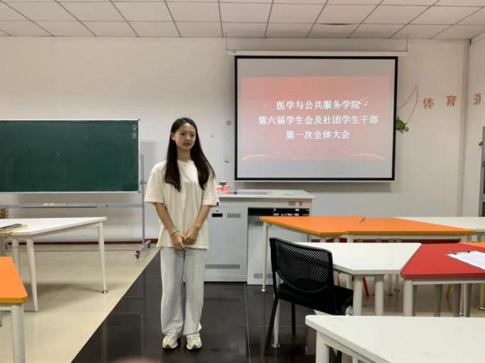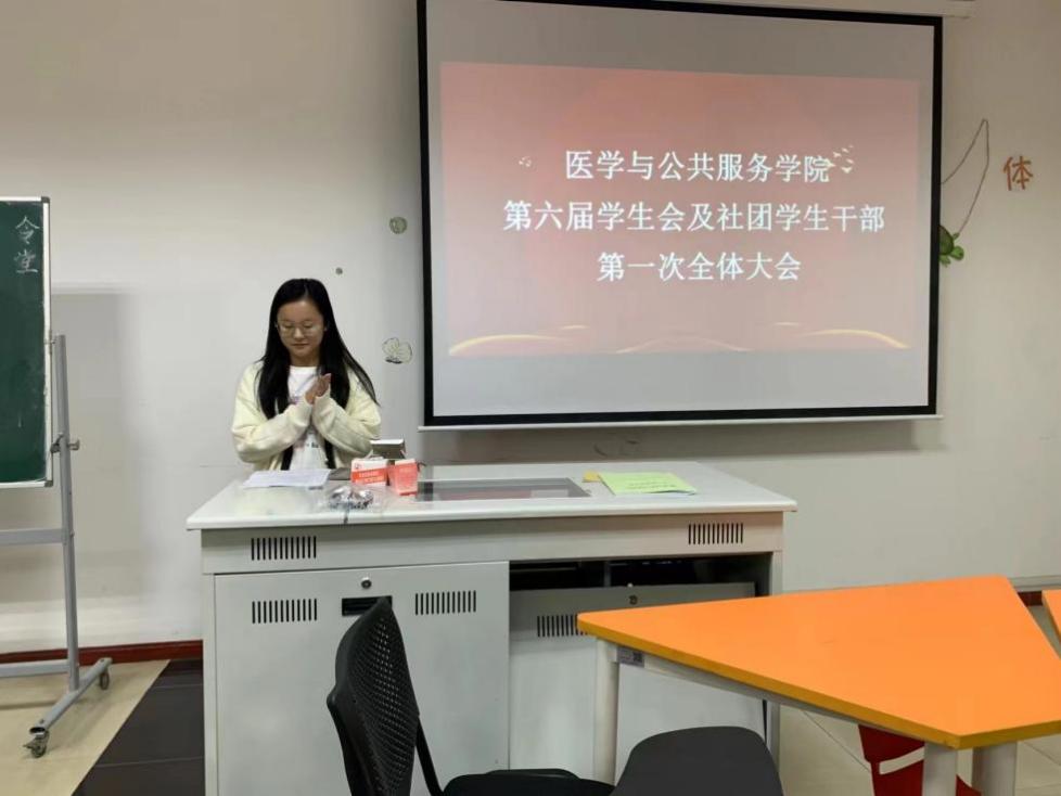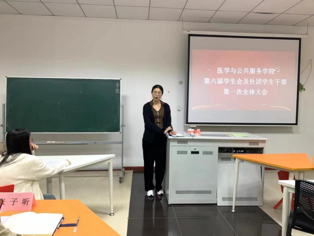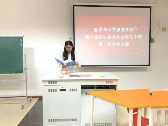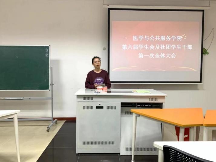 为推进院学生会及社团更好发展,提出学生工作新目标、新方向,成立新一届学生会及社团学生干部班子,医学与公共服务学院第六届学生会及社团学生干部第一次全体大会于10月9日在10-205顺利召开。医学与公共服务学院学生工作办公室主任贺茜老师、分团委书记周红婕老师、辅导员张子昕老师、邓竹青老师出席本次会议。