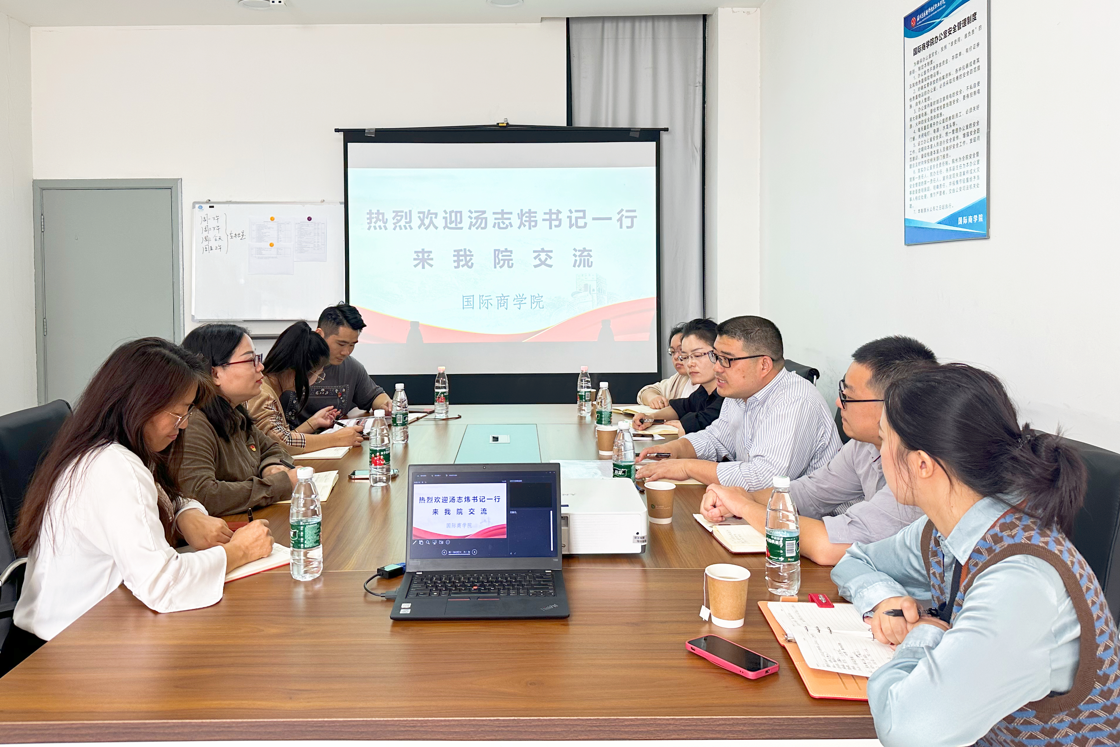 为了进一步加强服务型基层党组织建设,以党建共建为牵引,资源共享,优势互补,共同提升党建工作水平,2023年10月17日青山绿庭社区书记汤志炜同志一行人莅临国际商学院进行了一次深入的党建共建交流。