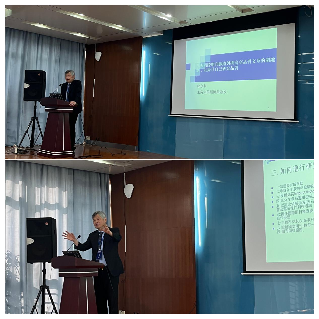 2023年10月20日下午1点,台湾东吴大学邱永和教授应邀前来我校为国际商学院老师作了题为“掌握国际期刊脉络与撰写高品质文章的关键点,以提升自己的研究品质”的学术讲座。讲座由国际商学院特聘教授罗正英主持,全体教师参加了本次学术讲座。