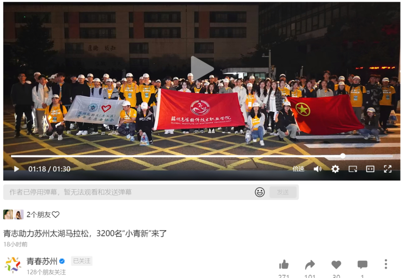 值得一提的是,我校学子本次志愿服务工作赢得了组委会、参赛选手以及广大市民的一致认可和好评。高新区团委书记金雨菲、志愿者负责人苏高新文旅集团李婷婷均对志愿者们的优秀表现进行肯定和表扬。本次志愿活动也得到了“青春苏州”“高新青年汇”等公众号和视频号的点赞。