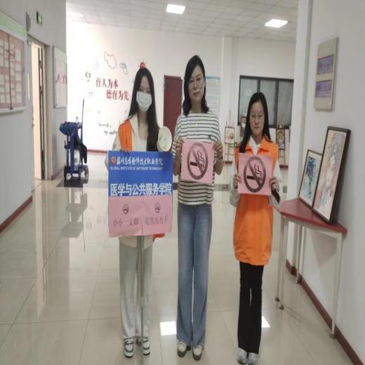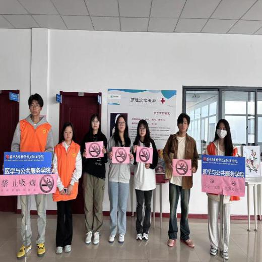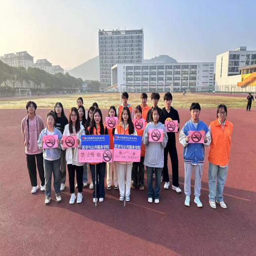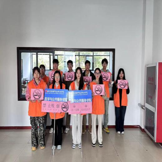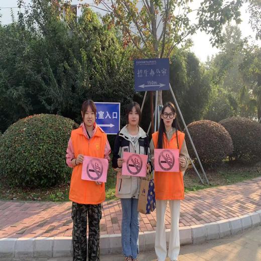 为营造无烟环境,共建绿色校园。我院学生社团广泛宣传,动员同学们自觉遵守禁烟规定,积极参与到校园禁烟活动中。志愿者通过在宿舍楼、操场、食堂外放置禁烟标识,组织对校园吸烟现象进行监督,共创文明校园。