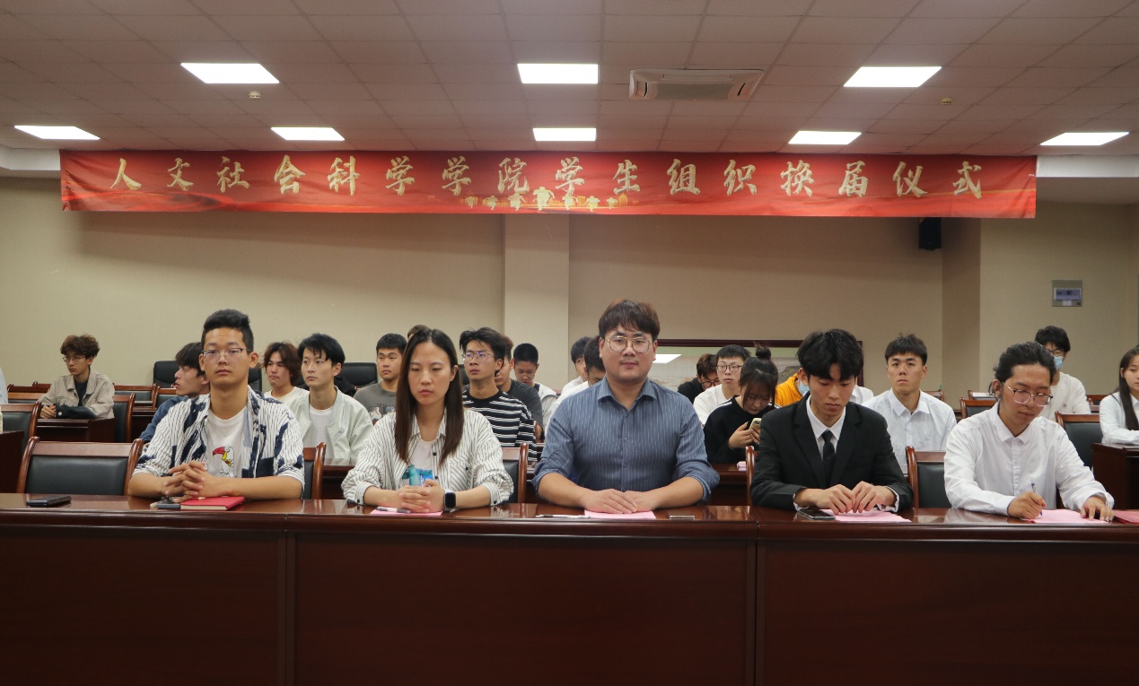本次人文社会科学学院六届二任学生组织换届仪式的顺利举行,标志着新一届学生组织的正式成立。相信在全体成员的共同努力下,学院的学生工作将迈上新台阶,为学校发展做出更大贡献。(供稿:人文社会科学学院分团委)