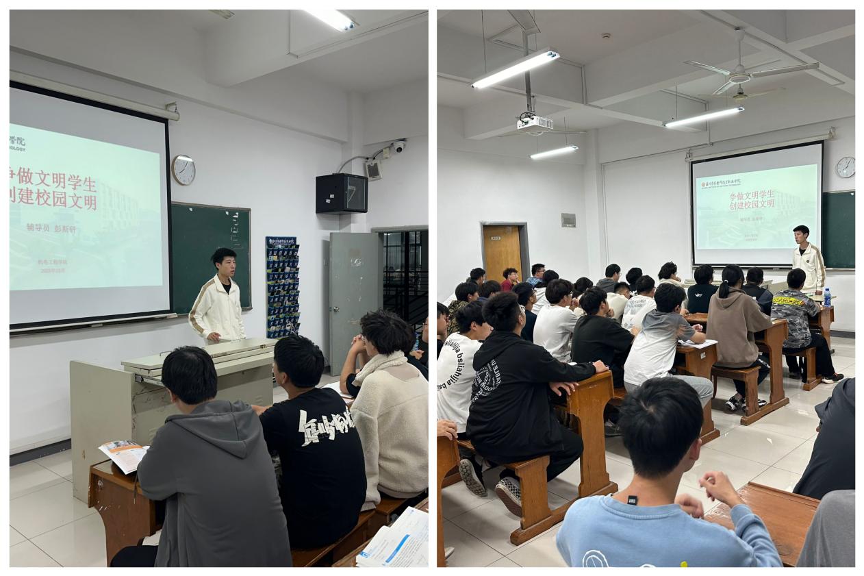 为深入学习贯彻习近平总书记关于精神文明建设的重要论述精神,全面推进学校文明校园建设,提高学生文明素养。2023年10月12日至10月20日,机电工程学院陆续开展“争做文明学生,创建文明校园”主题班会。