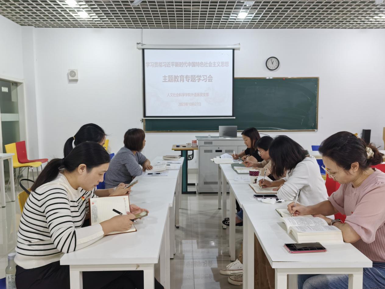 为深入学习贯彻习近平新时代中国特色社会主义思想,认真落实“学思想、强党性、重实践、建新功”的主题教育总要求。10月27日下午,人文社会科学学院外语系党支部开展“学思想,强党性”主题党日活动,本次活动由党支部书记卢春林主持,全体教师党员参加。