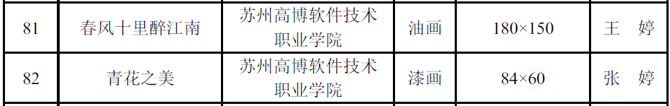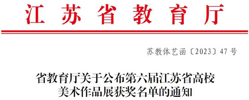 近日,由江苏省教育厅主办的第六届江苏省高校美术作品展公布了比赛结果。此次高校美术作品展共收到全省122所高校投稿作品4124件,经专家组评选,我校共2项作品获教师组三等奖,分别是艺术与建筑学院王婷老师的作品《春风十里醉江南》和医学与公共服务学院张婷老师的作品《青花之美》。