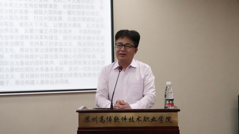 为进一步推动习近平新时代中国特色社会主义思想学深走实,扎实开展党的二十大精神宣传教育,培训高水平理论宣讲师队伍,并帮助师生分析了解当前国际形势热点,11月1日下午,马克思主义学院邀请苏州大学马克思主义学院顾宏松老师为我校做专题讲座。此次活动由马克思主义学院教研室主任、党支部书记蒋婧杰主持,校党委副书记、副校长倪筱琴、人文社会科学学院党总支书记吴建明出席了本次活动。马克思主义学院全体教师、人文学院部分教师和学生骨干参加了此次活动。