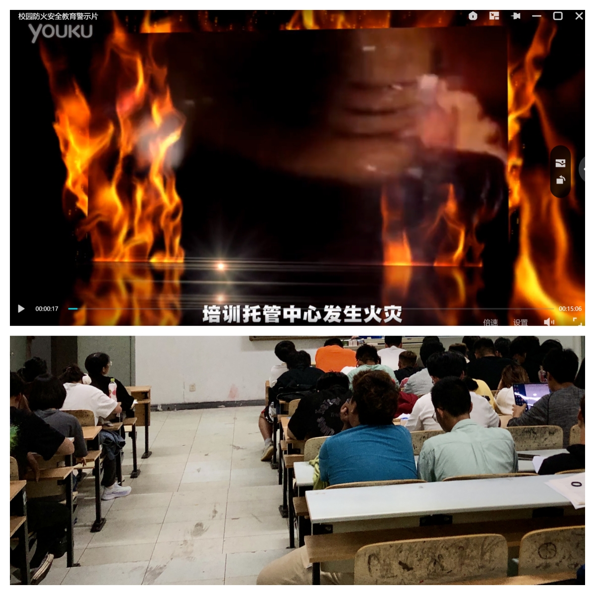 首先,我院组织同学们集体观看了《校园消防警示片》。该片通过剖析近几年校园消防事故案例,运用图片、视频资料等形式对各类安全问题进行科学与客观的剖析,教育片主题鲜明,通过真实案例以触目惊心的画面唤醒同学们的安全意识,具有很强的震撼力和说服力。