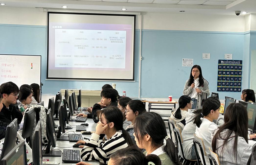 为了赛程活动规范,赛事科学严谨,会计金融系在2023年11月2日组织学生进行了模拟赛,指导老师们为学生详细讲解赛项各流程以及注意点,并进行操作示范,旨在提升比赛流程的合规性和公平性。11月8日进行正式比赛,比赛共分为会计素养比赛和智能工具应用比赛两大赛项,其中会计素养比赛分为传票及打字录入和企业财务会计综合职业能力来进行,考察学生电脑基本技能以及在处理资产、负债以及利润等业务时能否熟练地完成相关账务处理等操作。智能工具应用比赛主要考察智能工具应用能力,利用科云数智化财务云平台,考察学生对大数据采集清洗,数据存储管理,数据挖掘分析,大数据可视化,大数据安全等知识的掌握以及使用Python解决方案将整个数据处理过程自动化的能力。赛场上同学们沉着应对,认真操作,用踔厉奋发的姿态充分展现了我院大数据与会计专业学子的风采。