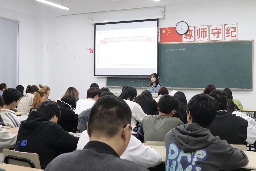 为深入学习宣传贯彻习近平新时代中国特色社会主义思想和党的二十大精神,持续加强学生的学习行动力,2023年11月6日晚7点,在大一晚自习教室围绕“新时代,新青年”开展了新思想公开课。本次公开课由学生会组织建设部部长顾芳雨同学主讲。