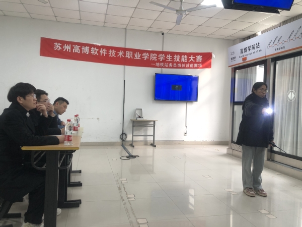 为进一步落实技能竞赛引领职业教育“三教”改革,提高技术技能人才培养质量,11月15日,苏州高博软件技术职业学院学生技能大赛——地铁站务员岗位技能赛项在14号楼站控实训室顺利举行。机电工程学院院长助理、轨道交通系副主任韩丽东副教授,苏州地铁3号线安全主管王丽萍,3号线横山区域站区负责人庄翔,3号线园区火车站区域站区负责人余子航出席比赛并担任大赛评委。