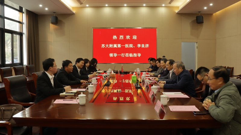 11月16日下午,苏大附属第一医院党委书记刘济生、院长缪丽燕,李良济董事长李建华、总经理徐洪明等一行9人莅临我校参观交流。学校校长朱秀林,党委书记薛辉,副校长邹学海,健康科技研究所所长秦正红参加座谈会。会议由薛辉书记主持。三方就如何推进合作事宜进行了充分交流和讨论。