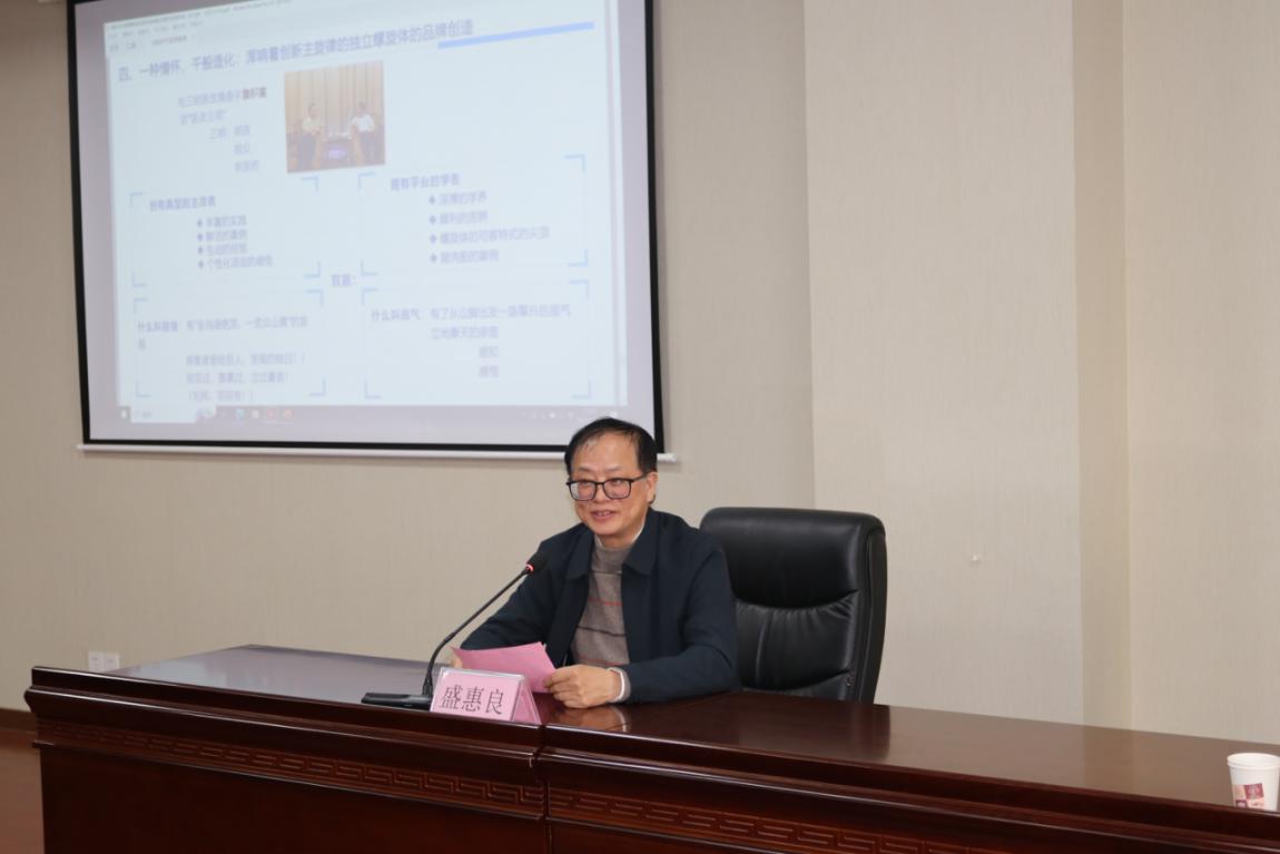 2023年11月16日,我校盛情邀请江苏护理职业学院原党委书记吉文桥研究员作了题为《三足鼎立 三翼齐飞 文化引领——谈高校在区域创新品牌发展中的“双塔”功效”》的专题讲座,会议由学校副校长盛惠良教授主持。