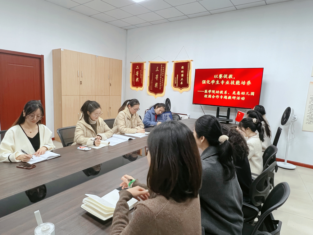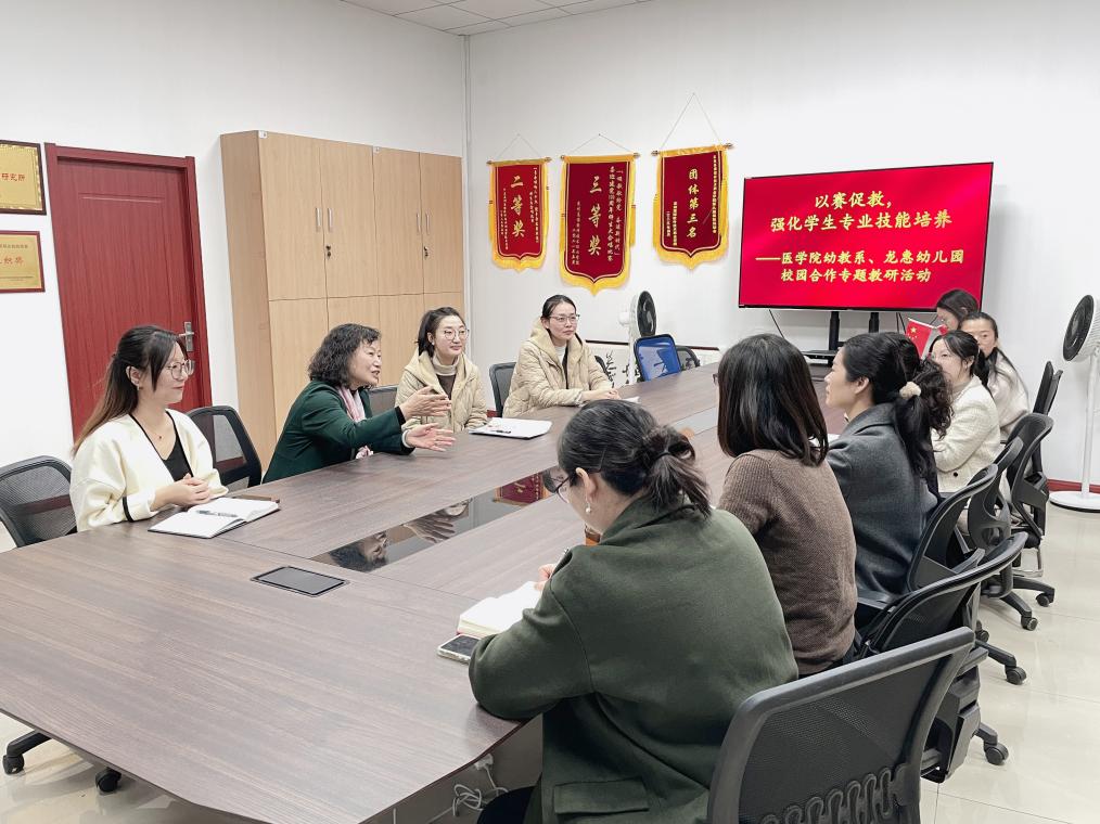 为提升2024年省技能大赛学生的专业水平,医学与公共服务学院幼教系与龙惠幼儿园进行校园合作专题教研活动。2023年11月17日上午,医学院院长孙小娅院长、幼教系主任张婷老师、龙惠幼儿园薛老师和萧老师、幼教系教师们出席活动,活动由幼教系主任张婷老师主持。