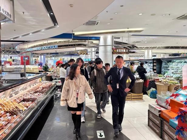 此次参观得到了泉屋企业的热情接待,学生们到达泉屋时,泉屋的店长、各部门主管等人都已在门口等候。简单寒暄之后,在泉屋店长的引导下,学生们从地下一层的超市、甜品、面包房等经营店面开始,逐一参观了泉屋各个楼层品牌运营情况。通过此次实地参观,学生们可以了解到该企业的经营模式、产品种类、制作工艺等方面的信息。