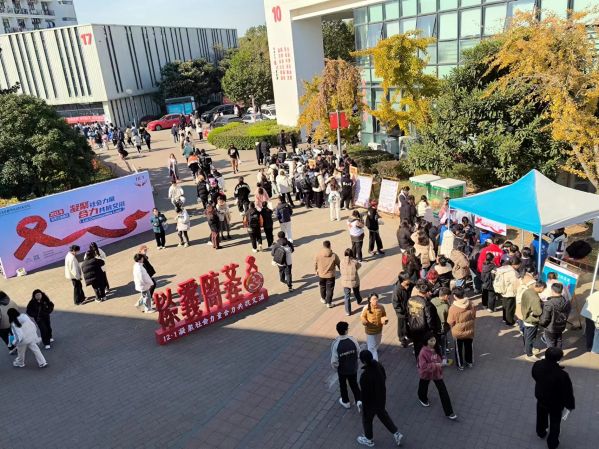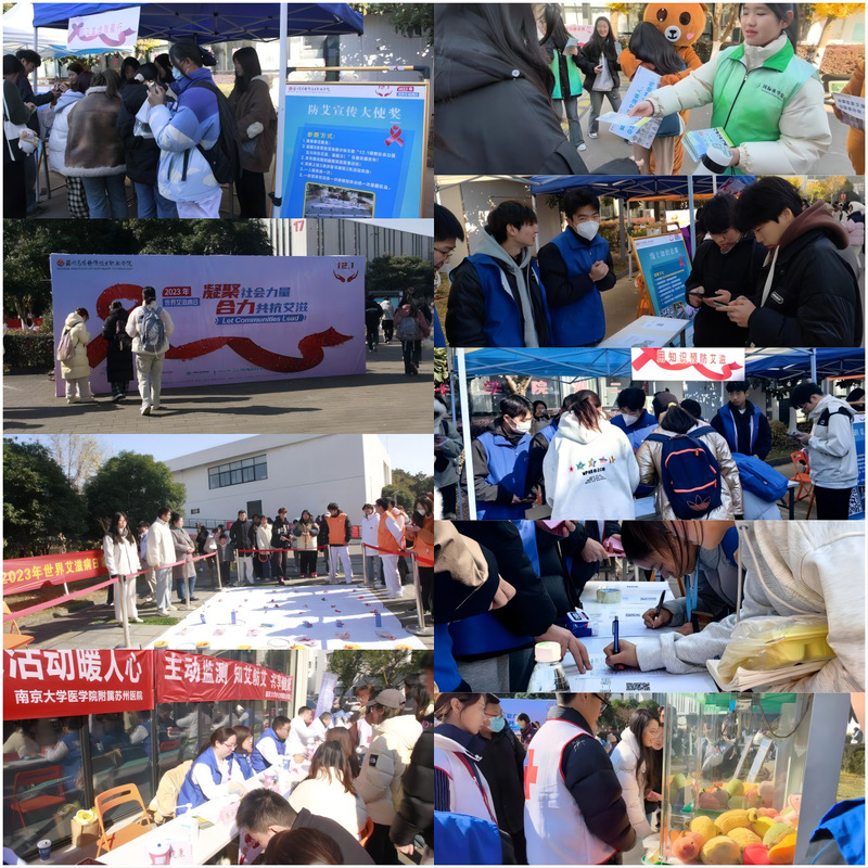 12月1日中午,由学生处学生健康中心主办,各二级学院协办的“12.1世界艾滋病日”广场宣传活动在学校食堂广场圆满结束。“凝聚社会力量 合力共抗艾滋”这一主题,今年的广场宣传活动除了各类知识展板和海报宣传外,还设置了线上知识答题、防艾宣传口号、防艾宣传大使、点亮红丝带、拥抱“艾滋病人”等活动,值得一提的是南京大学医学院附属苏州医院和东渚社区医院的医生也一起来到我们活动现场,提供义诊服务,广受师生欢迎。