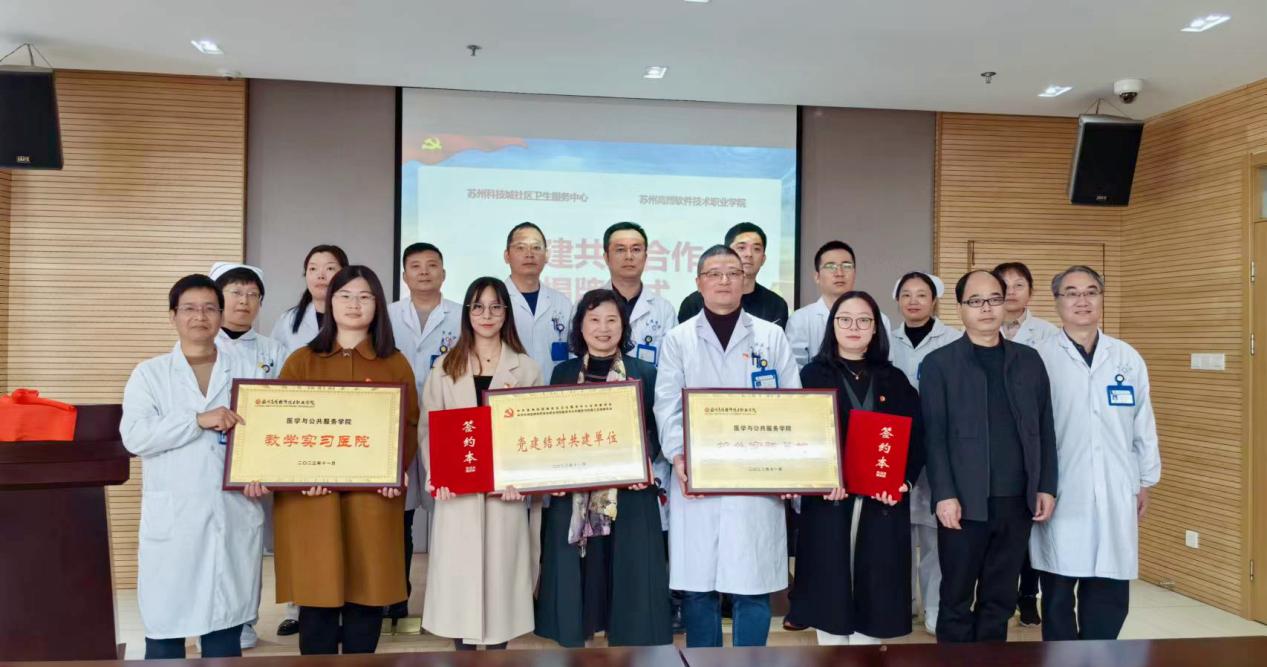 11月30日上午,我院与苏州科技城社区卫生服务中心党建共建、教学实习医院、校外实践基地揭牌仪式在中心三楼大会议室顺利举行,这标志着苏州科技城社区卫生服务中心正式成为我院相关专业的实习基地。