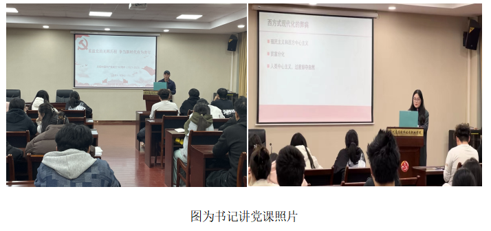 其次,党总支副书记纪冰心副教授、支部书记李一帆老师分别为第33期入党积极分子上党课,推动主题教育工作走深走实。纪冰心副教授以“重温党的光辉历程,争做新时代有为青年”为题,通过讲授党在不同时期的奋斗历史,带领学生们重温了那段光辉的奋斗历程,引导学生大力发扬红色传统、传承红色基因,赓续共产党人精神血脉,增强“四个意识”、坚定“四个自信”、做到“两个维护”,提高思想认识和政治站位;李一帆老师以“以文化自信赋能中国高质量发展”为题,从党的二十大报告引入主题,阐释了文化自信与中国式现代化的关系,表示作为新时代的青年,要认真学习专业文化知识,提升专业技能,在新的历史征程中自觉肩负起新的文化使命,在实践创造中进行文化创造,在历史进步中实现文化进步,以青春之力、奋斗之姿,担负起青春之责,共同书写中国式现代化新答卷。