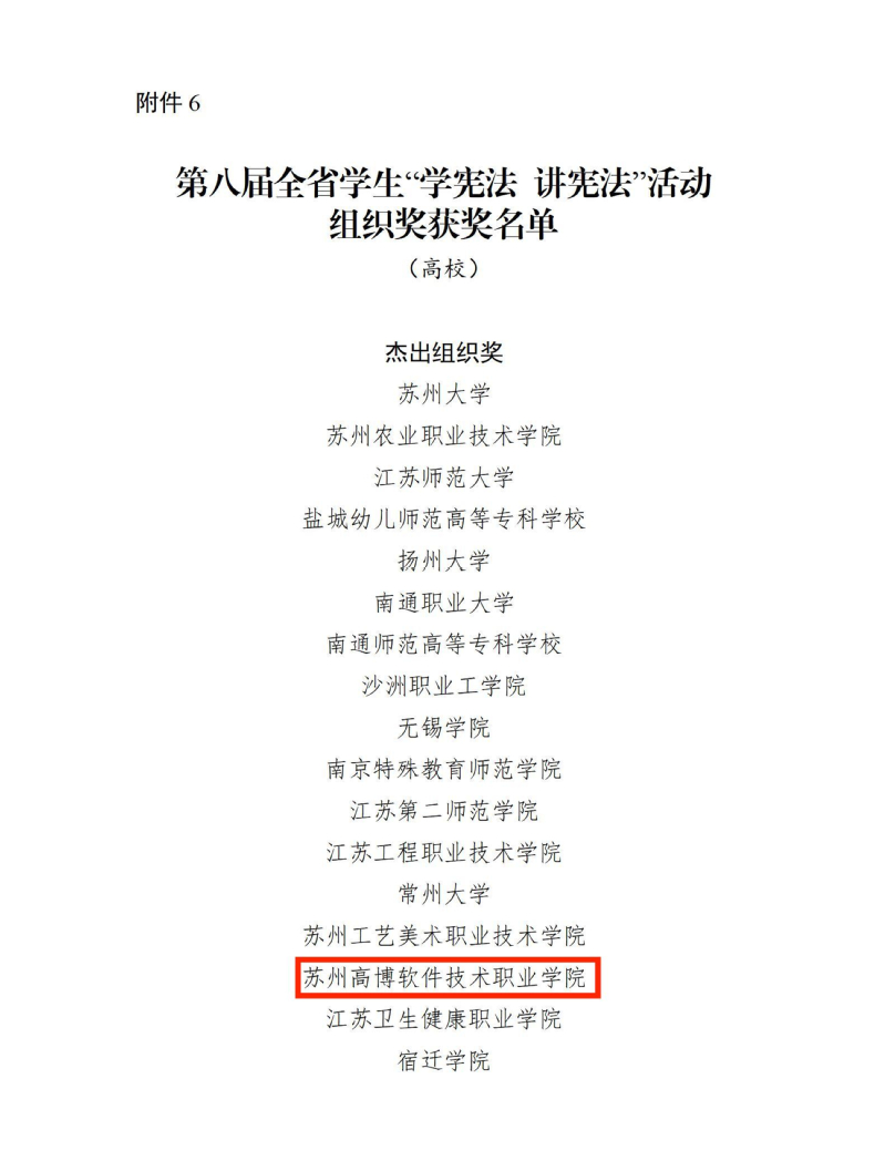 近日,江苏省教育厅公布了第八届全省学生“学宪法 讲宪法”活动表彰名单,我校以优异的成绩喜获高校组“杰出组织奖”。