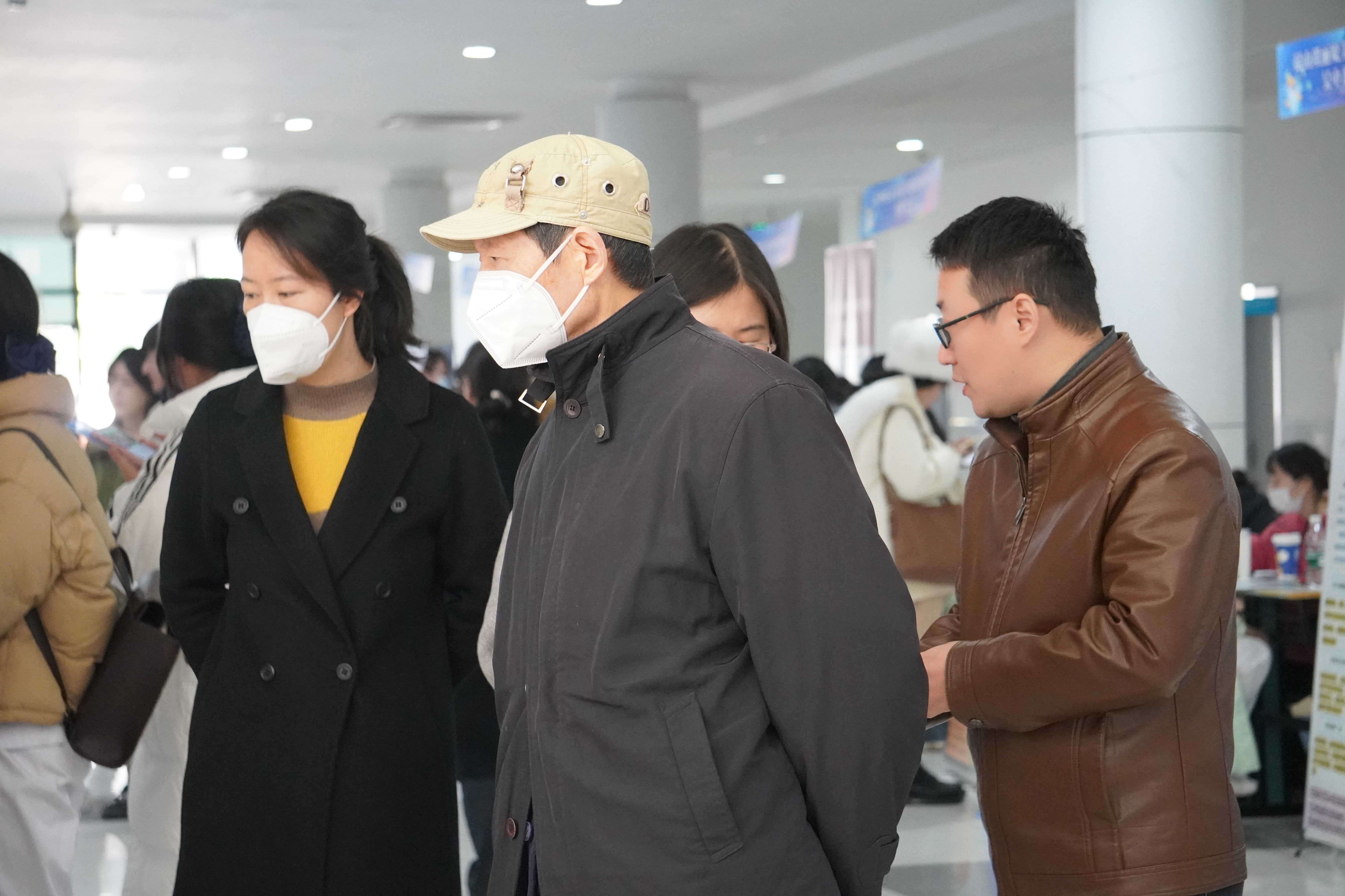 招聘会现场,各招聘单位宣传牌、海报早已林立就位。本次招聘会中不乏苏州大学附属第一医院、苏州大学附属第二医院、苏州市立医院等单位。招聘会现场参与人数达500余人次,吸引了我院各年级的学生参与其中。在招聘会现场,除了应届毕业生外,不乏低年级的学子也积极参与其中,学习观摩。辅导员老师带领在校学生来到现场,与用人单位共同座谈,了解用人单位需求,了解当前的社会就业现状以及具体岗位要求,帮助同学们确立学习规划、调整就业目标,更加充分地做好职业规划。