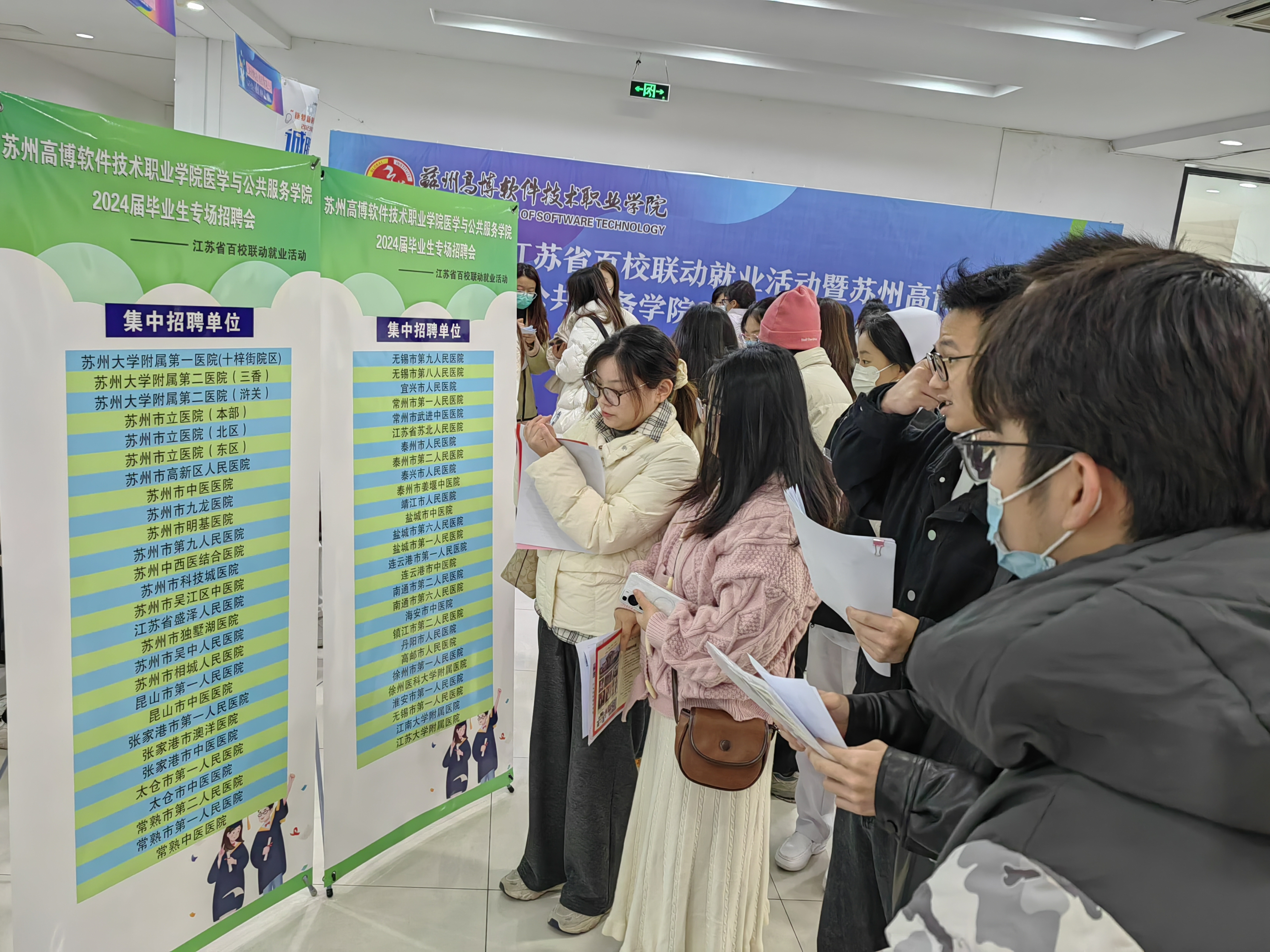 为深入贯彻落实国家和江苏省关于高校毕业生就业工作的相关决策部署,为用人单位和毕业生搭建良好交流平台,助力学生高质量就业。12月7日,我院举办“江苏省百校联动就业活动暨苏州高博 医学与公共服务学院2024届毕业生专场招聘会”,此次专场招聘会涉及专业为护理、健康管理、药品经营与管理、老年保健与管理。