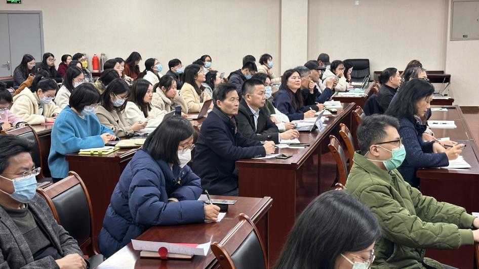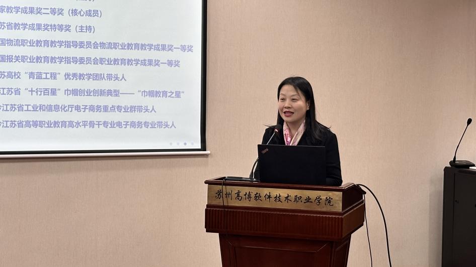为进一步做好我校教育教学过程中成果的凝练、总结和教学成果奖申报工作,锚定目标持续发力,凝练成果精准施策,提高学校省、市、校级教学成果奖的申报质量,12月6日下午,学校邀请了国家级教学成果奖一等奖获得者江苏电子信息职业学院章艳华教授,为我校教师开展了主题为“职业教育教学成果的培育与申报”的讲座。盛惠良副校长,各二级学院院长、副院长、教研室(系)主任、专业负责人等60余人参加了本次活动。活动由教务处陆霞处长主持。