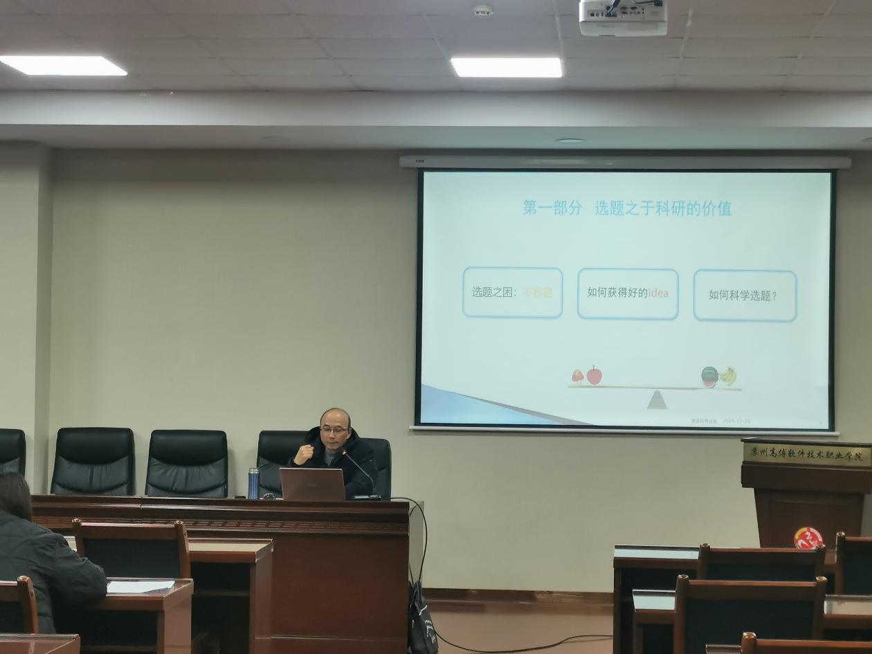 接着,朱福兴教授还分享了在社科研究方面的当前社会热点,主要有国际风云变幻,我们正面临百年未有之大变局;国家战略坚定推进,社科研究必须服务国家战略;宏观经济陷入长周期波动,第六次浪潮影响深远;新技术革命给经济社会带来前所未有的变革;微观主体面临机遇与挑战并存——管理创新与效率革命;政府与市场关系——中国特色市场经济建设绕不开的话题;学科发展——新商科与高等教育新革命。最后,朱教授结合自身的科研历程的点滴感想给予了老师们几点建议,要求老师们科研选题要锚定目标不动摇,是高质量科研的基本原则与前提;要广泛地阅读和交流,是获得好点子的必经之途;要获得多元、充分的学术(数据)资源,是科研的根本保障。