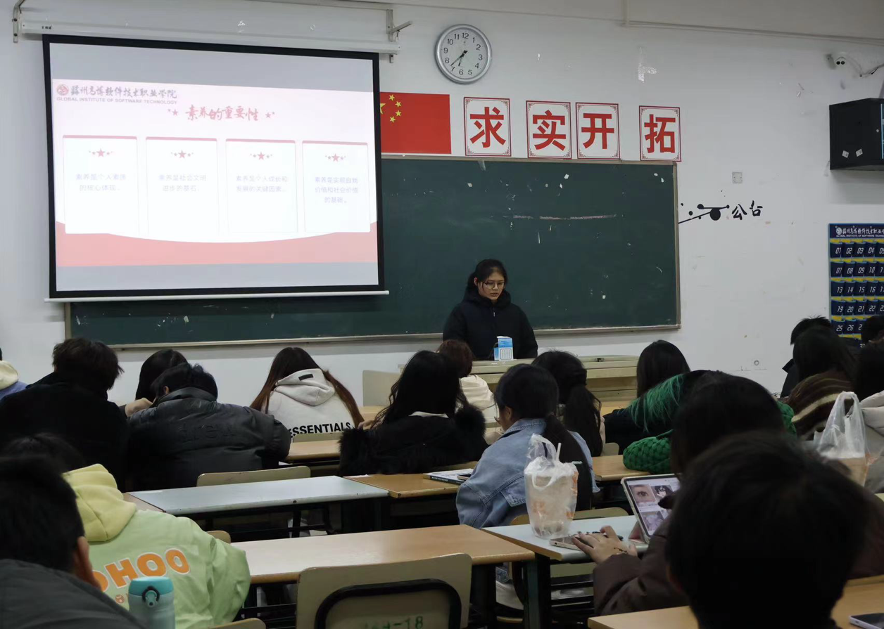 为深入学习贯彻党的二十大精神,引导同学们践行社会主义核心价值观,增强同学们个人素质,国际商学院分团委学生会于2023年12月26日在教学楼12-404开展以“创新素养,成就青春鸿图”为主题素养公开课,由国商分团委学生会创新宣传部副部长吴佳怡同学担任主讲人,大一同学参加听讲。
