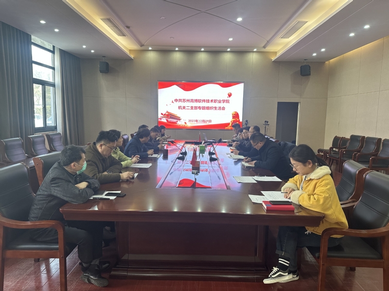 2023年12月29日,机关二支部在行政楼一楼101会议室召开2023年度专题组织生活会,副校长邹学海、盛惠良参加支部专题组织生活会,会议由支部书记陈永平主持。会上,陈永平书记从主题教育开展、思想建设、理论学习、党建引领、专业建设、科研创新、对外合作等方面进行述职。随后,党员同志从工作中存在的问题、今后工作努力的方向等方面开展批评与自我批评。
