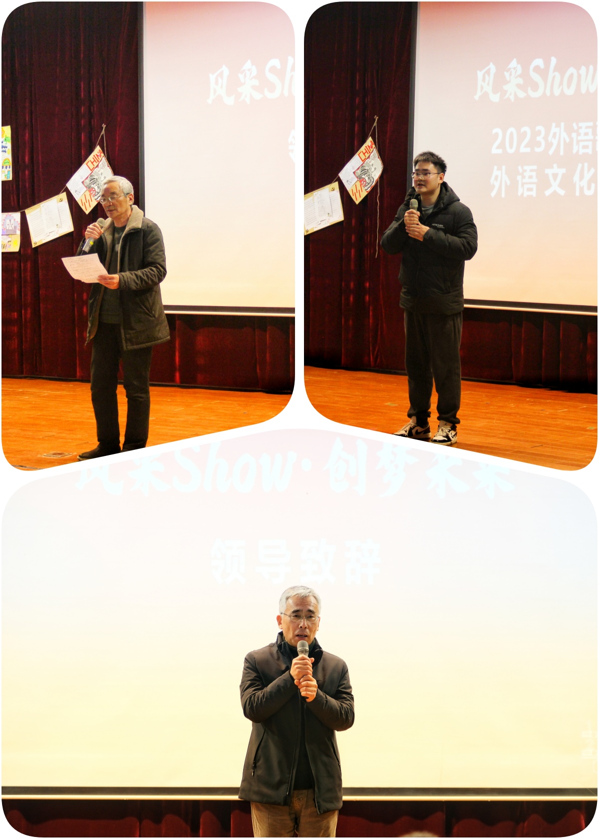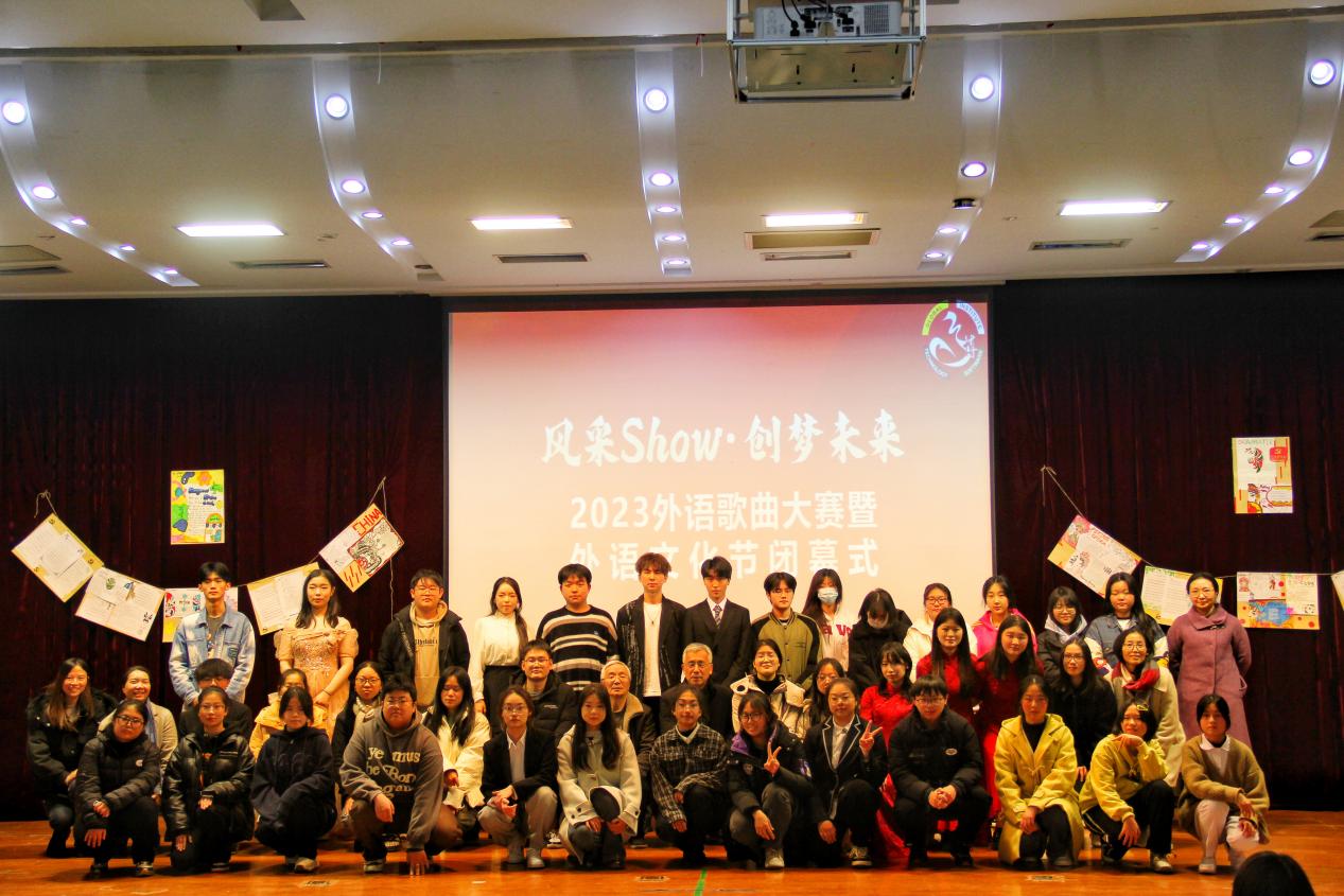 由人文社会科学学院外语系主办、乐学外语俱乐部承办的2023高博外文歌曲大赛暨外语文化节闭幕式于12月27日在实训楼大报告厅举行。校长助理、人文社会科学学院院长黄兴,学生工作处副处长、校团委书记王鑫,校团委副书记孙宇珊,特聘教授洪庆福,人文社会科学学院副院长马亚丽、人文社会科学学院学工办主任赵雪飞以及人文学院外语系全体教师和部分学生参加了活动。