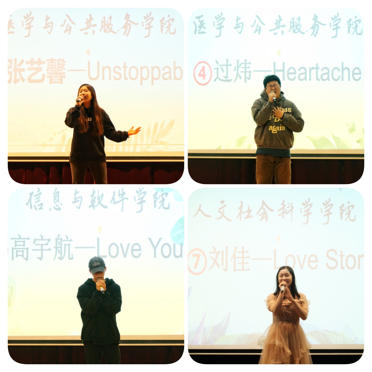 作为本届外语文化节的一项重要内容,外文歌曲大赛吸引了众多学生报名参赛。经过预赛,共有7名选手进入了最终决赛。在外文歌曲大赛决赛中,7位选手分别演唱了自己最拿手最擅长的外文歌曲,展示了他们的音乐才华和独特的风格,赢得了全场观众热烈的掌声。