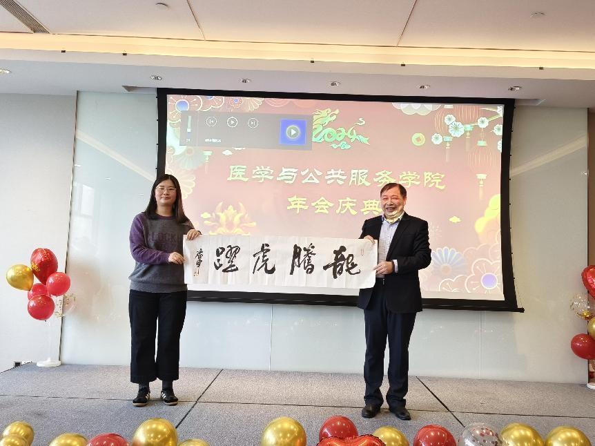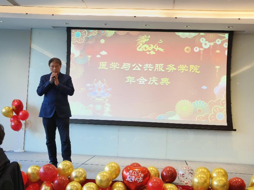 接着,医学与公共服务学院的党政领导班子对于全体教职工的付出表示感谢,并送上新年祝福,勉励全体教职工在新的一年继续团结一心,奋发进取,为学院高质量发展贡献力量。