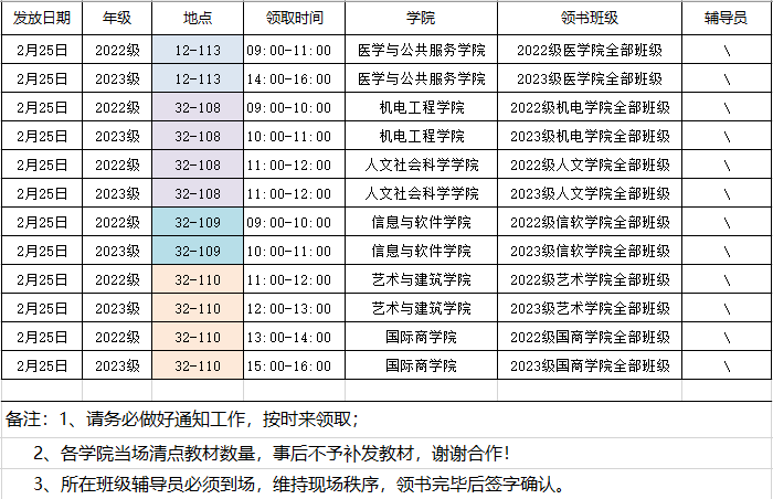 关于2023-2024-2学期2022级2023级教材发放安排的通知