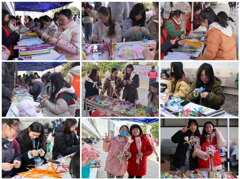 本次活动内容丰富多彩、形式新颖,共有美好记录之拍照打卡、笑颜常开之传递祝福、心灵手巧之手工制作三个项目。在拍照打卡区,师生们拿起彩笔认真地在海报墙签下自己的名字并进行合影留念,有的手捧鲜花,洋溢着灿烂的笑容,展现着她们的温柔与美丽;在互动娱乐区,师生们选出心仪的明信片,深情地写下祝福;在手工制作区域,师生们聚集在一起,互相交流着制作花朵的技巧,有的动作娴熟地折叠着纸张、有的细心地给花瓣着色。每位参与活动的师生都在此刻找到了属于自己的快乐和幸福,真正回归了活动的初衷“在高博,遇见美好,也遇见更好的自己!”
