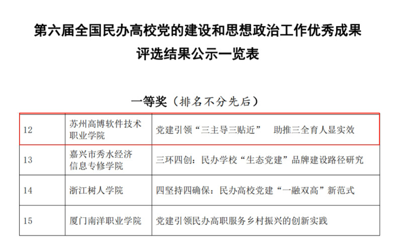 为深入学习贯彻习近平新时代中国特色社会主义思想和党的二十大精神,持续总结和宣传民办高校党建与思想政治工作取得的成绩与经验,推动民办高校党建与思想政治工作创新发展,中国民办教育协会面向全国民办高校开展第六届全国民办高校党建和思想政治工作优秀成果评选,我校医学与公共服务学院申报的项目《党建引领“三主导三贴近”助推三全育人显实效》荣获一等奖。